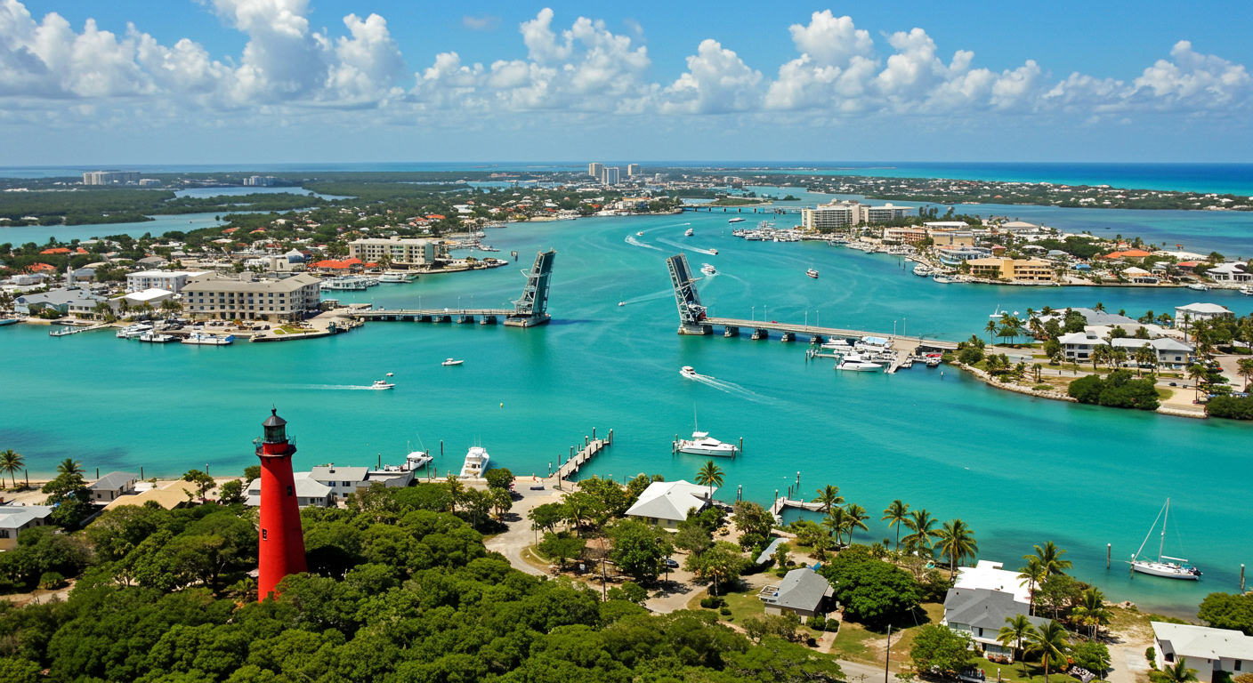 Jupiter – Jupiter is a delightful community slightly north of Palm Beach on the mainland. It sits in a unique location on the Atlantic Ocean and the Loxahatchee River, with the Intracoastal Waterway running through its middle. This distinctive location gives it a diversity of housing that includes incredible waterfront residences along the various waterways and many golf course homes.