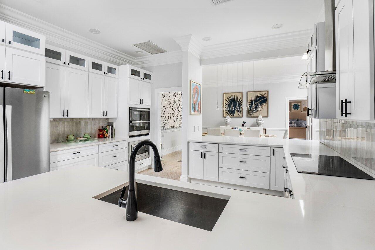 MOTIVATED SELLER-BRING ALL OFFERS! Experience luxury living in this completely remodeled, sun-filled single-story home in the exclusive, gated waterfront community of Cypress Island. This patio home features 3 bedrooms, 2 baths, and an office, all with modern updates. Brand-new kitchen with quartz counters, beautifully updated bathrooms, and hurricane-impact windows and doors. Soaring 12-foot tray ceilings and sunlit living spaces create an inviting interior. The flowing indoor-outdoor layout leads to a stunning tropical oasis backyard with a saltwater pool, lush landscaping, mosquito misting system and a covered loggia.