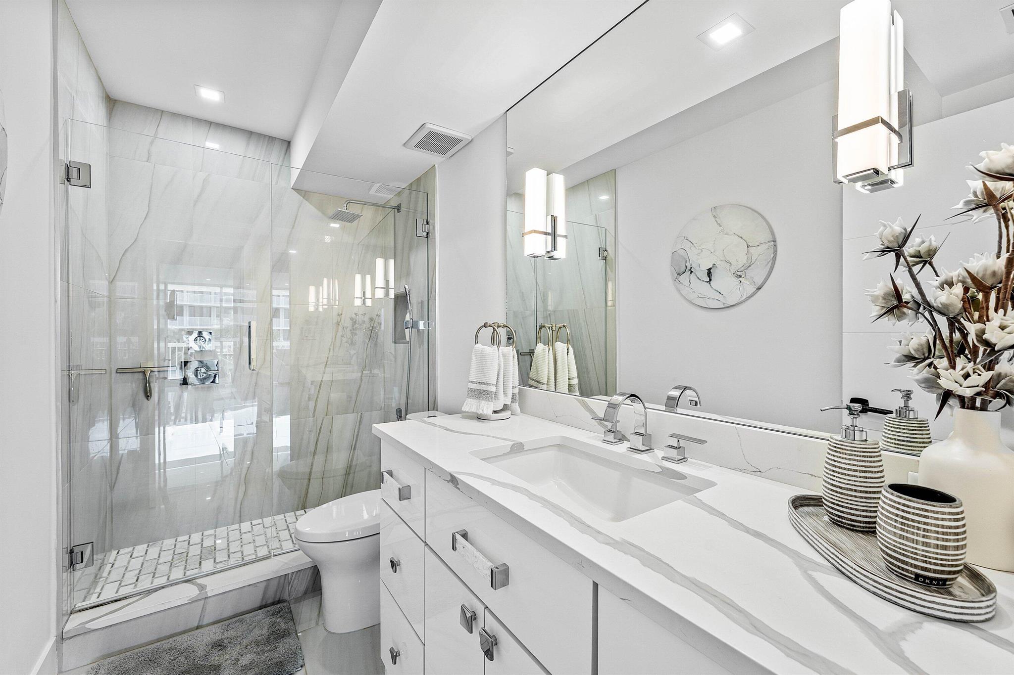 Sun filled ocean views from this completely renovated, spacious and pristine 2BR/2BA residence in the highly desirable Meridian, Palm Beach. Floor-to-ceiling impact sliders open from every room to a large private terrace overlooking the shoreline. Nearly 2,000 sq. ft. of updated interior living space includes a gracious foyer, separate dining area, and a well-appointed kitchen with breakfast bar and excellent storage. Split-bedroom layout provides privacy, both with walk-in closets and terrace access. The Meridian offers newly updated resort-style amenities: redesigned pool & spa, beach chair/umbrella service, tennis, fitness center, social room, garage parking, 24-hour gatehouse, and on-site maintenance. Enjoy luxury coastal living!
