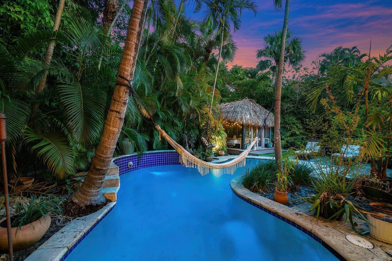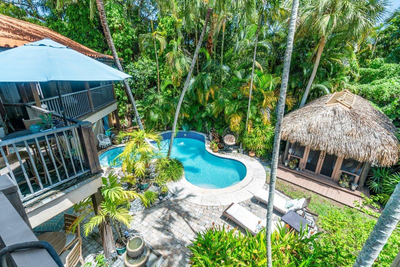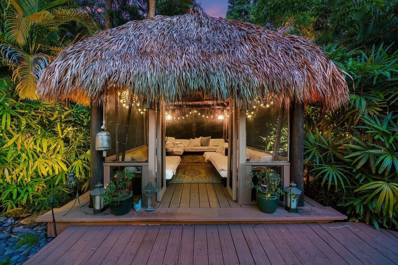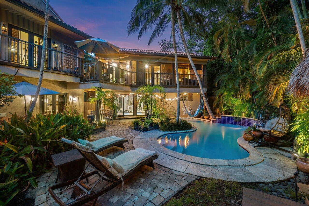 Discover the tropical bliss of living on Hypoluxo Island in this stunning 4 bed / 3 bath main house with a separate 1 bed / 1 bath guest house, offering 4,827 total sq ft on an oversized 14,375 sq ft lot.Highlights include a spacious primary suite, spa-like bathrooms, a gourmet kitchen, high ceilings, a loft, and serene settings throughout.Step outside to enjoy lush gardens, a heated pool, outdoor terraces, and a screened tiki huta"perfect for relaxation or entertaining.All this is located in a peaceful yet convenient setting, just moments from beaches, shopping, dining, the famed Eau Resort, and Nobu Manalapan.Experience the best of tropical gardens, privacy, luxury, comfort, and communitya"this is island living at its finest.