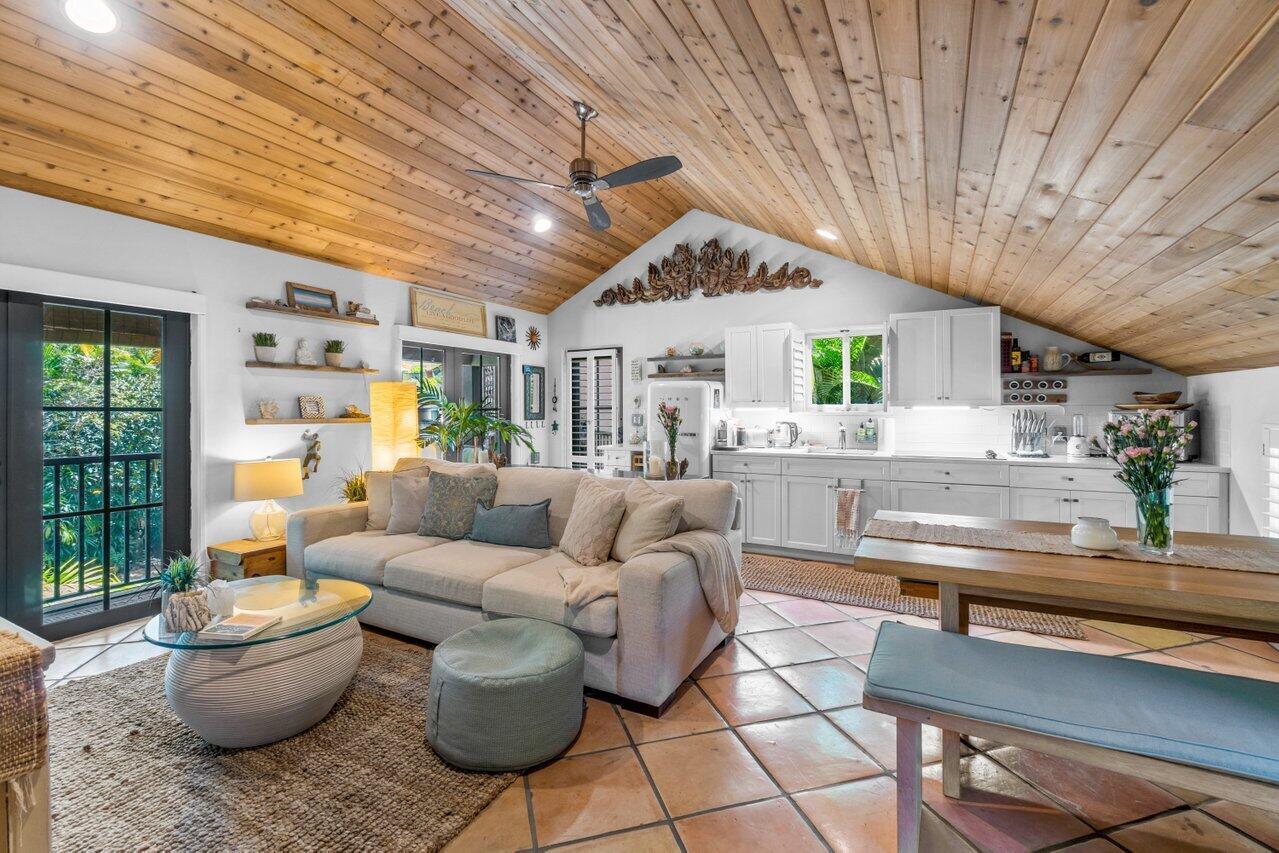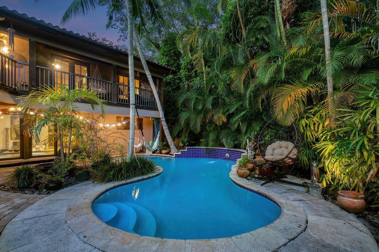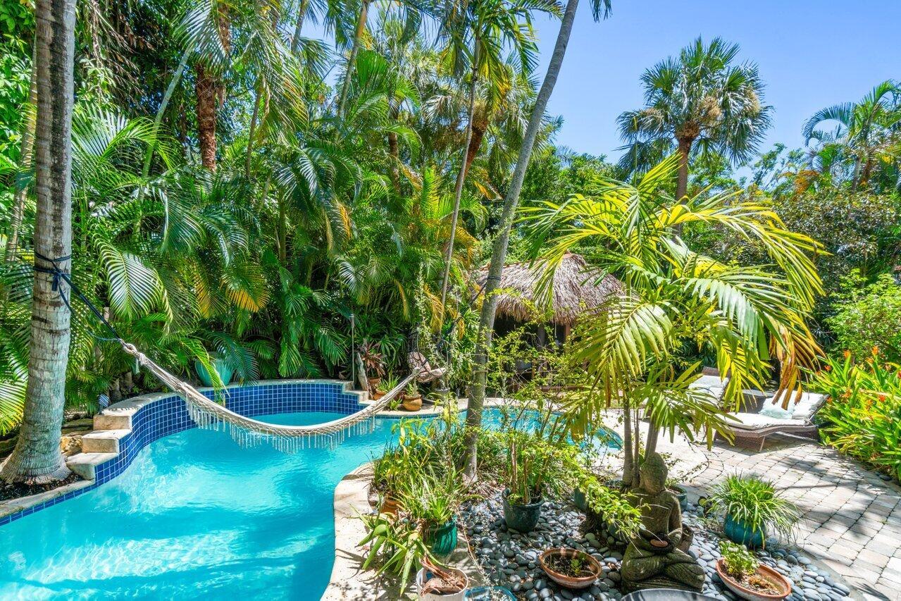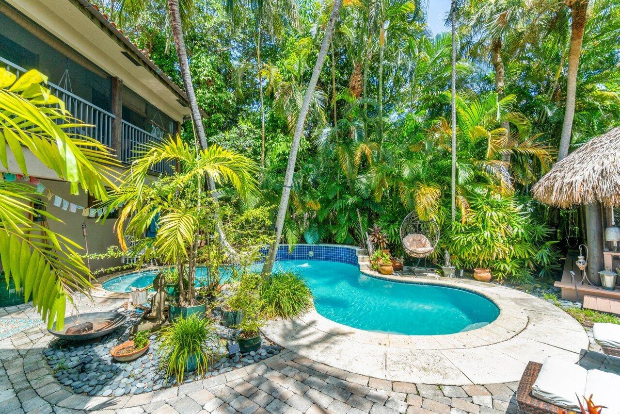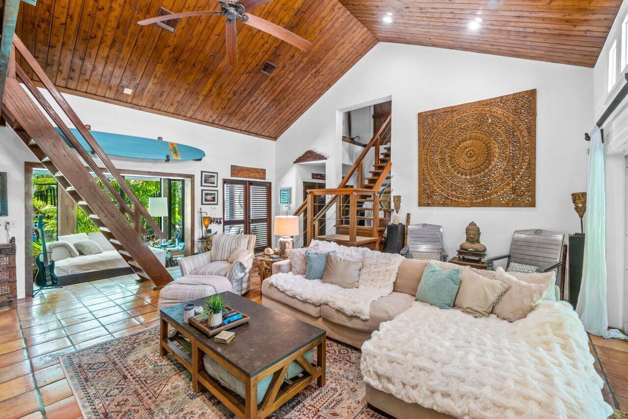 Discover the tropical bliss of living on Hypoluxo Island in this stunning 4 bed / 3 bath main house with a separate 1 bed / 1 bath guest house, offering 4,827 total sq ft on an oversized 14,375 sq ft lot.Highlights include a spacious primary suite, spa-like bathrooms, a gourmet kitchen, high ceilings, a loft, and serene settings throughout.Step outside to enjoy lush gardens, a heated pool, outdoor terraces, and a screened tiki huta"perfect for relaxation or entertaining.All this is located in a peaceful yet convenient setting, just moments from beaches, shopping, dining, the famed Eau Resort, and Nobu Manalapan.Experience the best of tropical gardens, privacy, luxury, comfort, and communitya"this is island living at its finest.