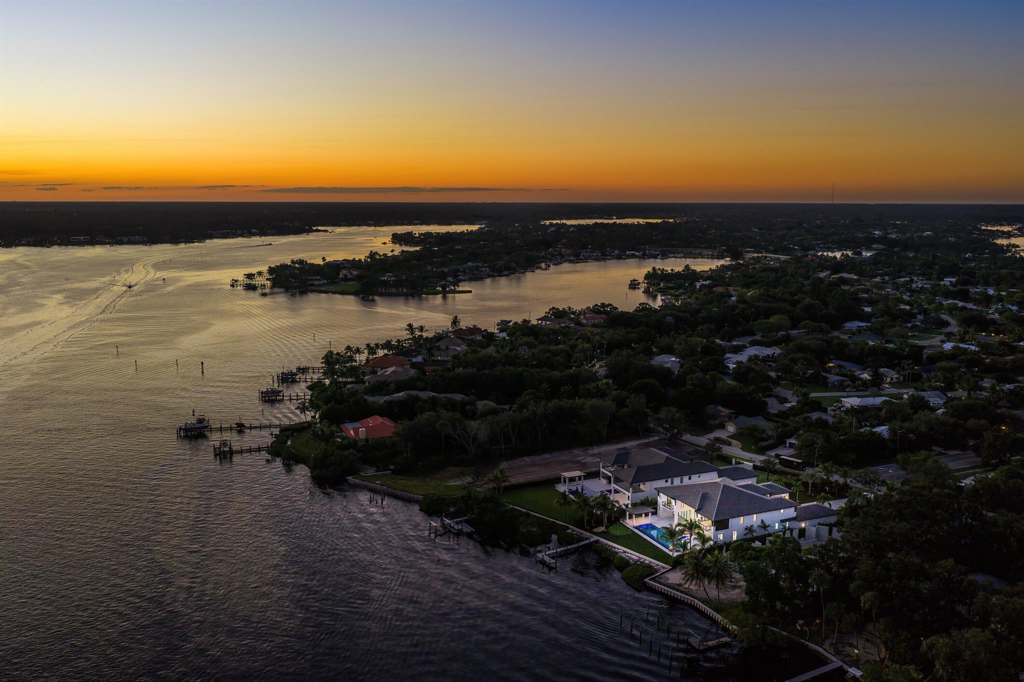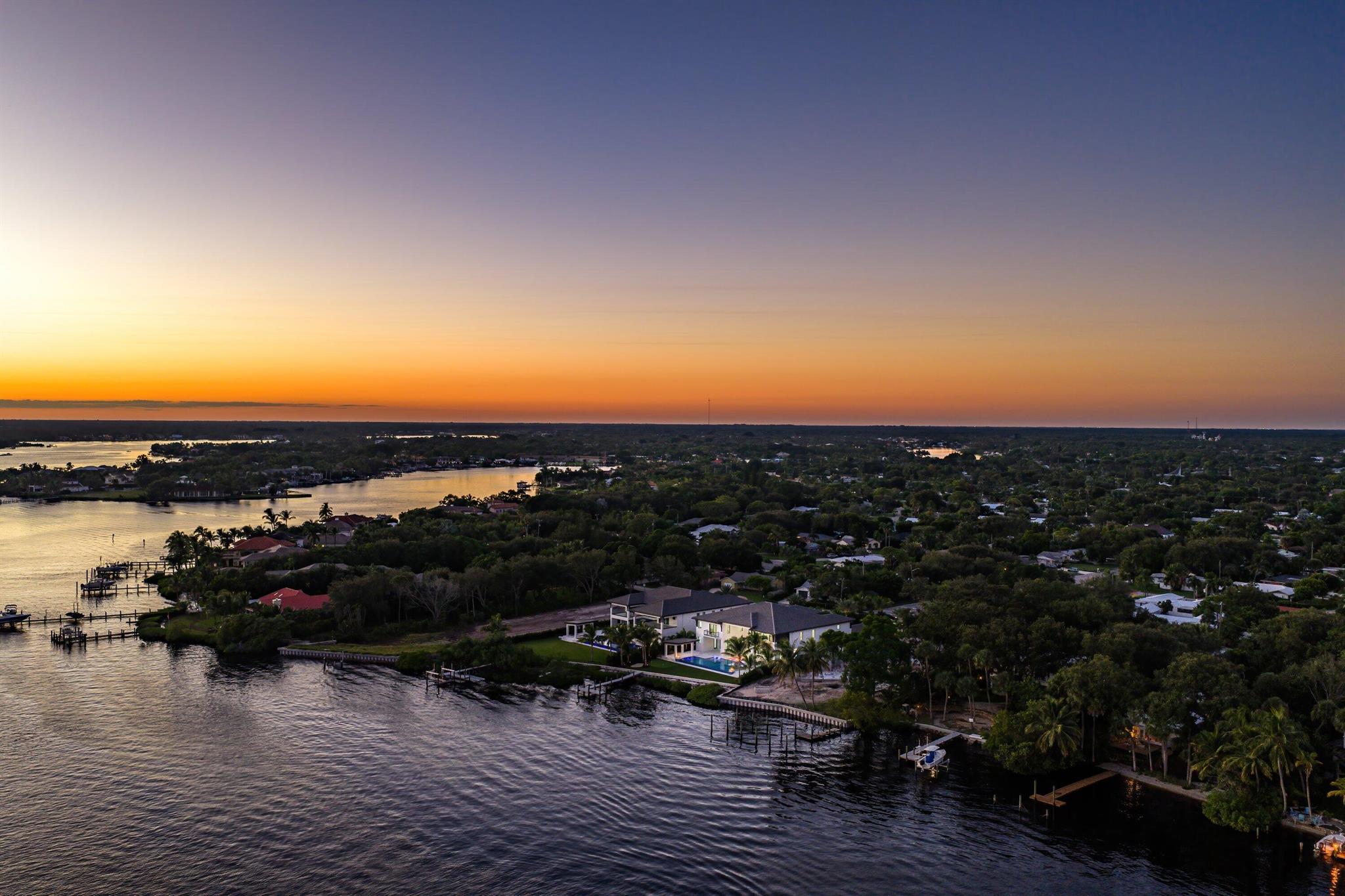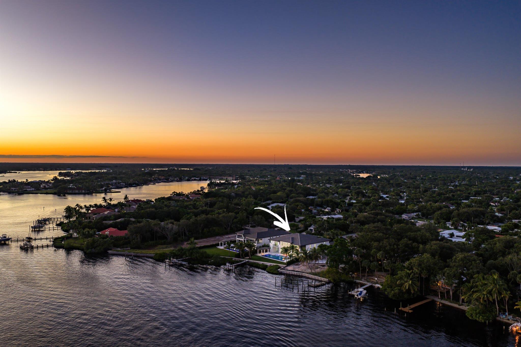 Experience unmatched luxury on the Loxahatchee River with this new waterfront estate offering panoramic blue water views. Featuring 23' ceilings, a striking floating staircase, and expansive living areas, the home is ideal for entertaining. The chef's kitchen boasts backlit quartz and seamless water vistas. The master retreat includes a fireplace sitting room, spa bath, dual closets, and balcony, with four en-suite guest suites. Outdoors, enjoy an infinity pool, spa, firepit, waterfall and new dock. An 8-car garage with clubroom, den, and gym add versatility. Recent upgrades include turf, putting green, enhanced privacy landscaping, premium landscape lighting, and new hurricane shades on the covered patios. A true boater's paradise.