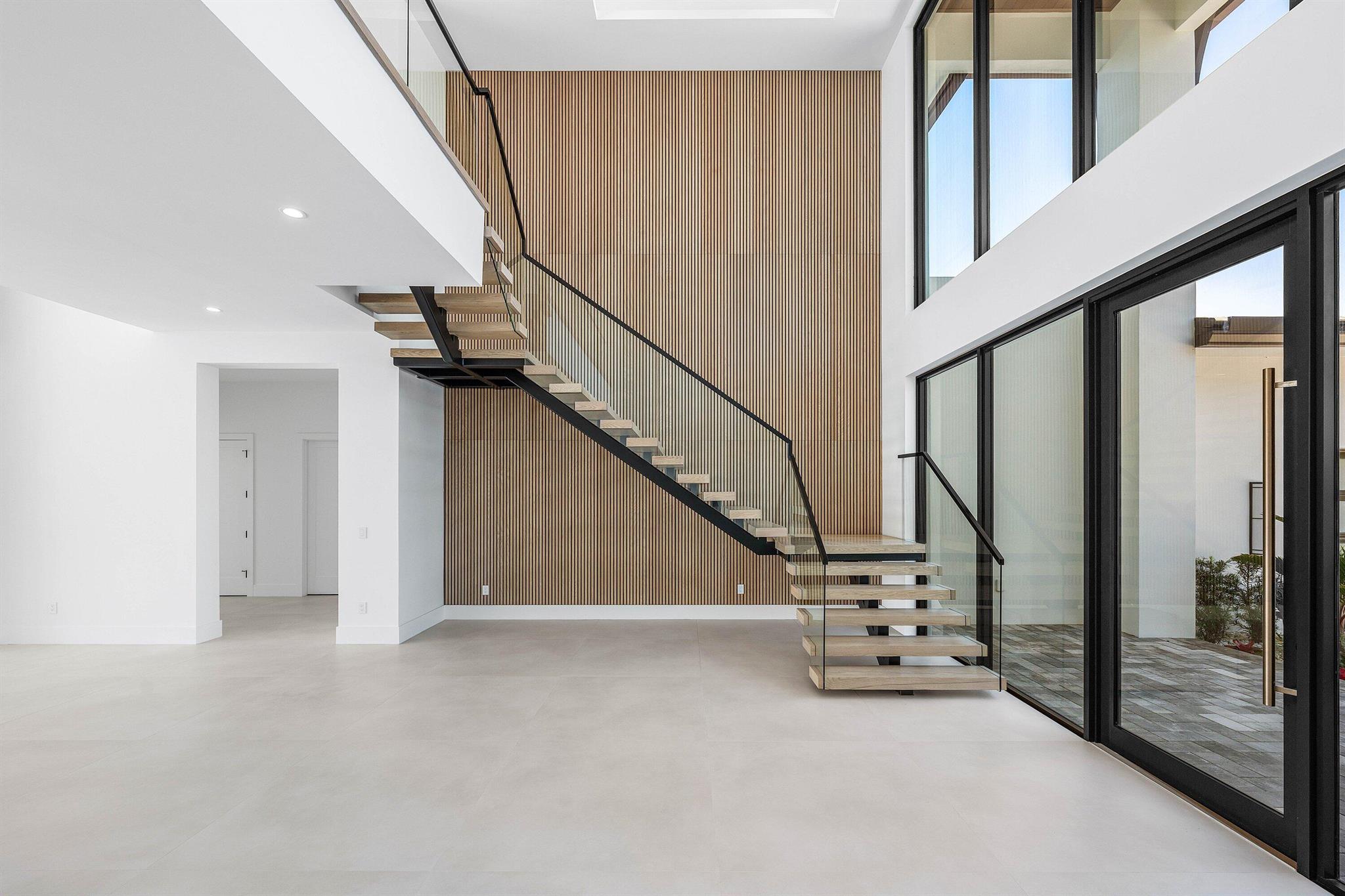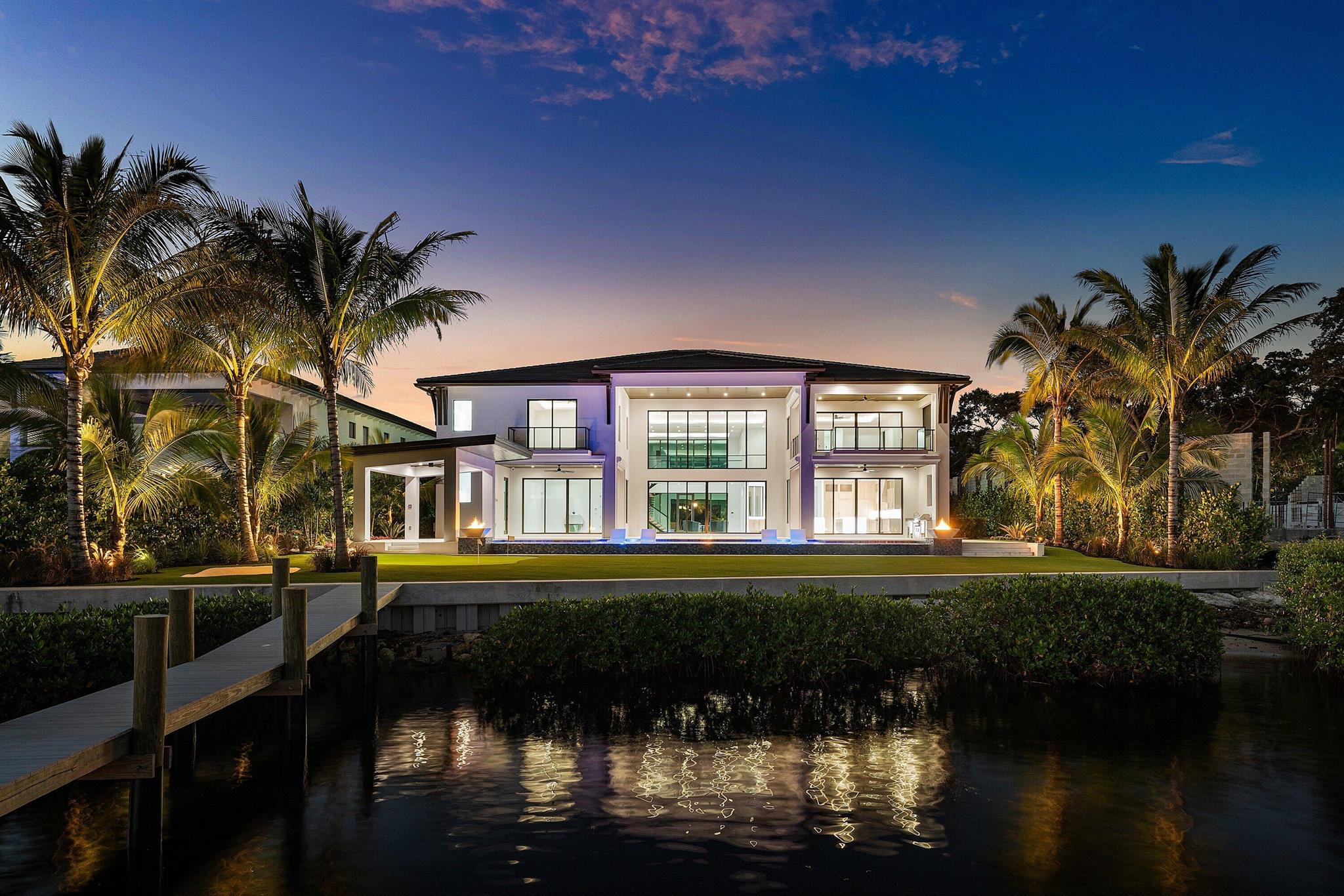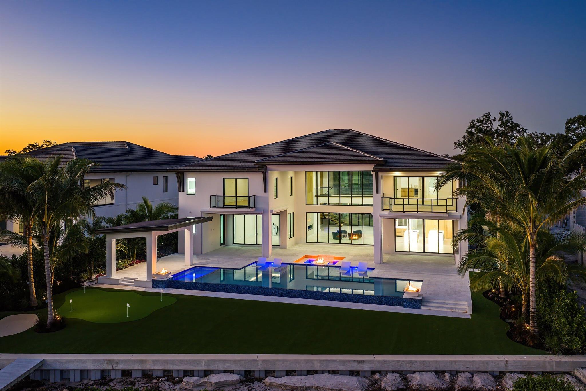 Experience unmatched luxury on the Loxahatchee River with this new waterfront estate offering panoramic blue water views. Featuring 23' ceilings, a striking floating staircase, and expansive living areas, the home is ideal for entertaining. The chef's kitchen boasts backlit quartz and seamless water vistas. The master retreat includes a fireplace sitting room, spa bath, dual closets, and balcony, with four en-suite guest suites. Outdoors, enjoy an infinity pool, spa, firepit, waterfall and new dock. An 8-car garage with clubroom, den, and gym add versatility. Recent upgrades include turf, putting green, enhanced privacy landscaping, premium landscape lighting, and new hurricane shades on the covered patios. A true boater's paradise.